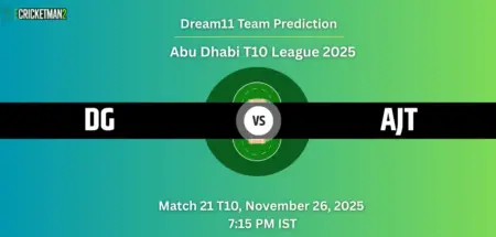 DG VS AJT Dream11 Prediction Match 21, Abu Dhabi T10 League 2025: Fantasy Cricket Tips, Captain & Vice-Captain Choices, Playing XI & Live UpdatesNovember 26, 2025