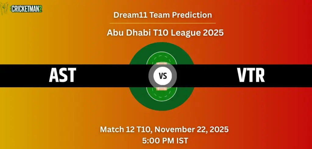 AST VS VTR Today Match Dream11 Prediction, Fantasy Cricket Tips, Playing XI, Pitch & Weather Report, Injury Update, Today Dream11 Team Captain And Vice-Captain Choices for Abu Dhabi T10 League 2025 Match 12: AST VS VTR