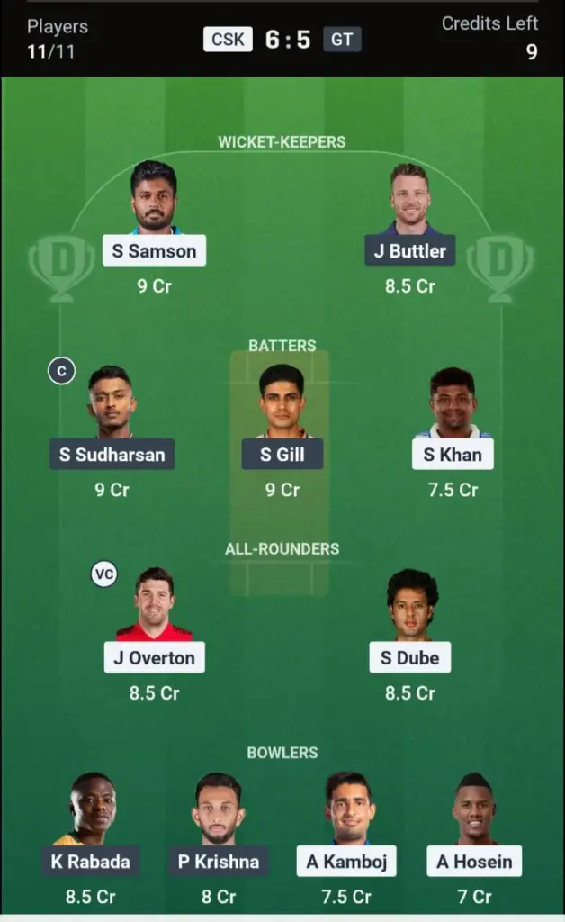 CSK VS GT Captain and Vice-captain Choices Grand League:
