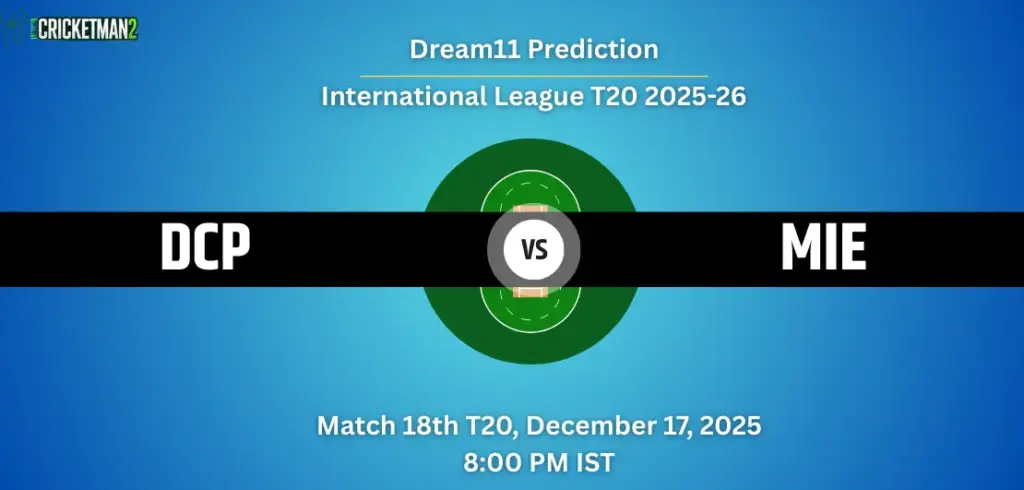 Home»Cricket»Dream 11 Prediction»DCP vs MIE Dream11 Prediction Today Match 18: Fantasy Cricket Tips, Captain & Vice-Captain Choices, Playing XI – International League T20 2025-26
