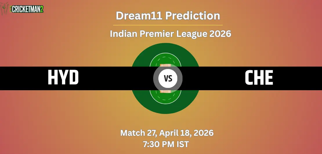 HYD vs CHE Dream11 Prediction Today Match 27 – IPL 2026: HYD vs CHE Dream11 Prediction Today Match 27, Preview: The 27th match of IPL 2026 will see a strong Southern Derby between Hyderabad (HYD) and Chennai (CHE). The match will be played on April 18, 2026, at 7:30 PM IST at the Rajiv Gandhi International Stadium, Hyderabad.