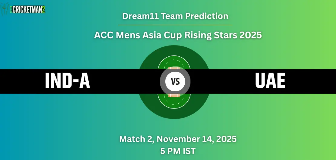 IND-A VS UAE Match 2, Dream11 Team Prediction for ACC Mens Asia Cup Rising Stars 2025Preview: The seventh edition of the ACC Emerging Teams Asia Cup is all set to begin. A total of 8 teams will take on each other in two groups of four games. There will be 12 group matches, followed by the semifinal and final on November 23. Afghanistan will defend their title. The first two matches will be played in Group B. Match no. 2 will see a contest between India A and the United Arab Emirates.