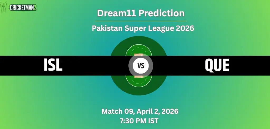 ISL VS QUE Match 9 Dream11 Team Prediction for Pakistan Super League 2026 Preview: The 11th edition of the Pakistan Super League (PSL 2026) will host its third doubleheader of the season on Thursday. Two great games will be played, and four teams will be in action with several superstars. The action starts with a game between the 2019 champion, Quetta Gladiators, and the three-time champion, Islamabad United. This contest will begin at 3 PM IST on Thursday at Gaddafi Stadium in Lahore.
