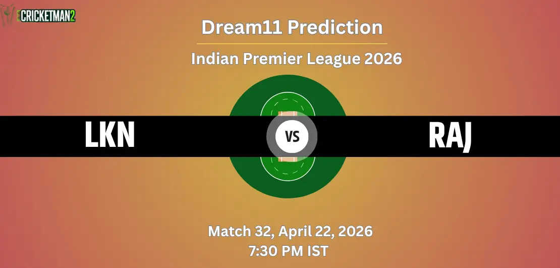LKN vs RAJ Dream11 Prediction Today Match 32 – IPL 2026: LKN vs RAJ Dream11 Prediction Today Match 32, Preview: The 32nd match of IPL 2026 will see Lucknow Super Giants (LKN) take on Rajasthan Royals (RAJ). The match will be played on Wednesday, April 22, 2026, at 7:30 PM IST at Bharat Ratna Shri Atal Bihari Vajpayee Ekana Cricket Stadium, Lucknow.