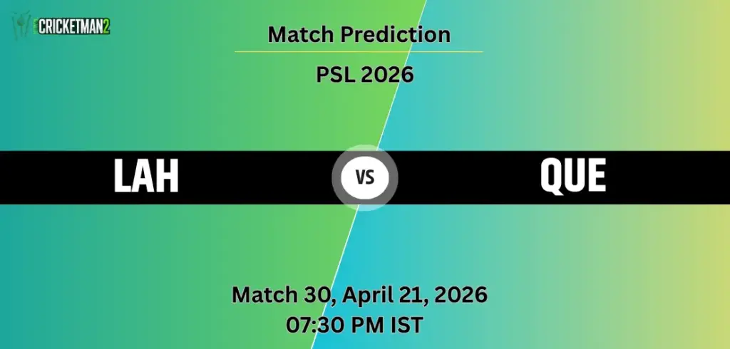 The 30th match of Pakistan Super League 2026 will see Lahore Qalandars (LAH) take on Quetta Gladiators (QUE) at Gaddafi Stadium, Lahore. The match will be played on April 21 at 7:30 PM IST. Both teams have won three matches so far, so this game is very important for points table position.
