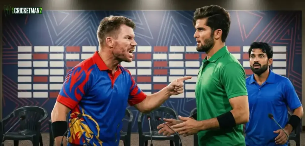 While speaking about competition and decision-making in the tournament, Warner expressed disagreement with certain viewpoints reportedly shared by Shaheen Afridi and Mohammad Rizwan. His comments were direct and sparked a tense moment in the room.