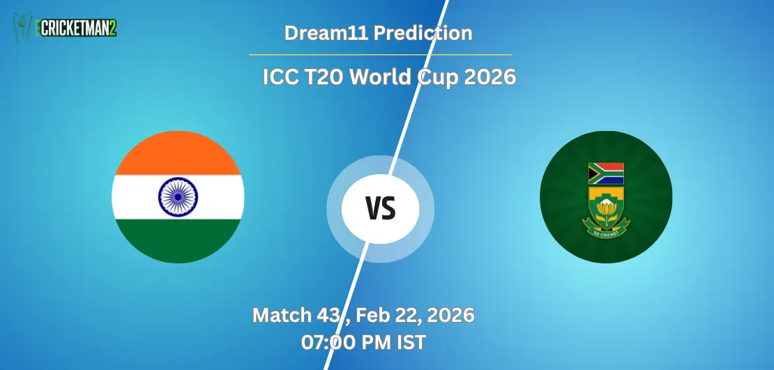 IND VS SA Match 43, Super 8, Dream11 Team Prediction for ICC T20 World Cup 2026 Preview: Two groups are divided with four teams each in the Super 8 round of the ICC T20 World Cup 2026. Group 1 has all four teams who have not lost a single game so far, and the next game will be played from this group only. Two sides, who have lost a combined 1 game in the last two editions, will be up against each other in Ahmedabad.